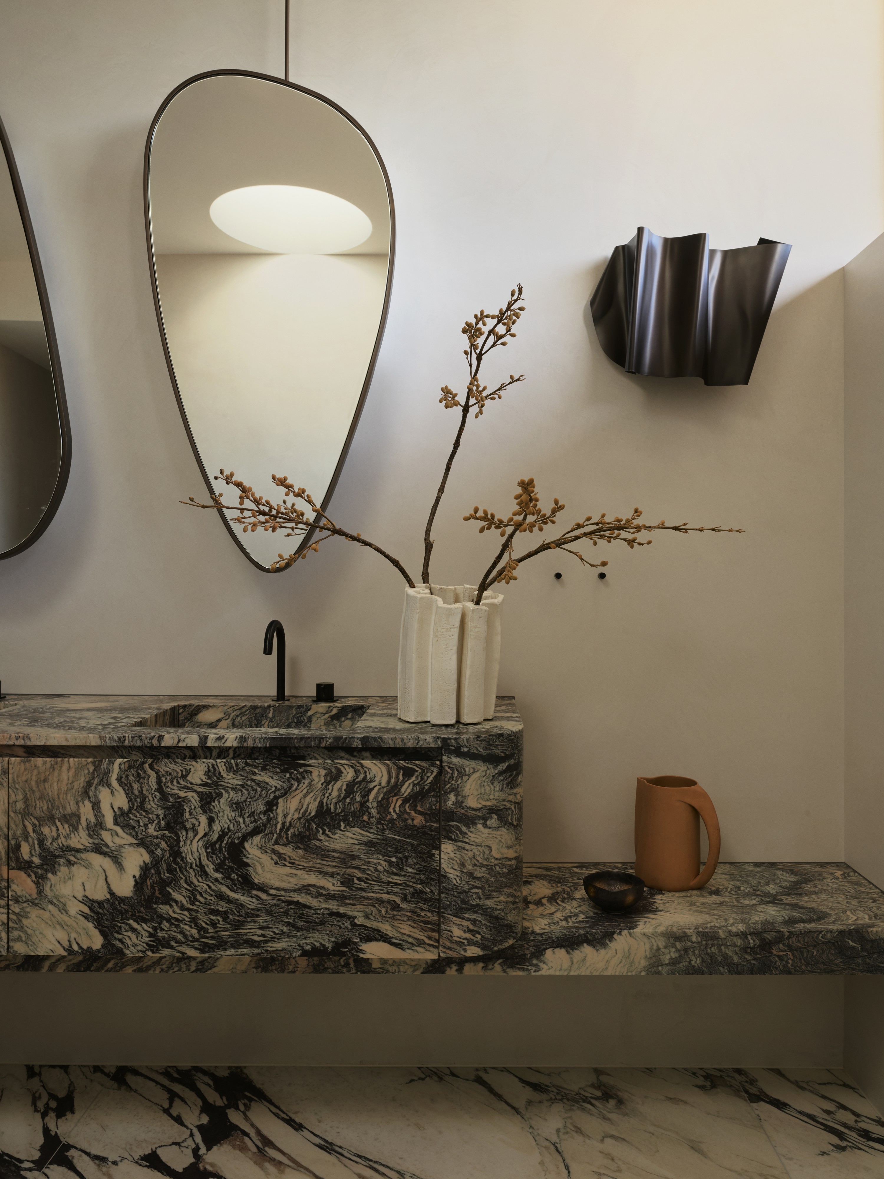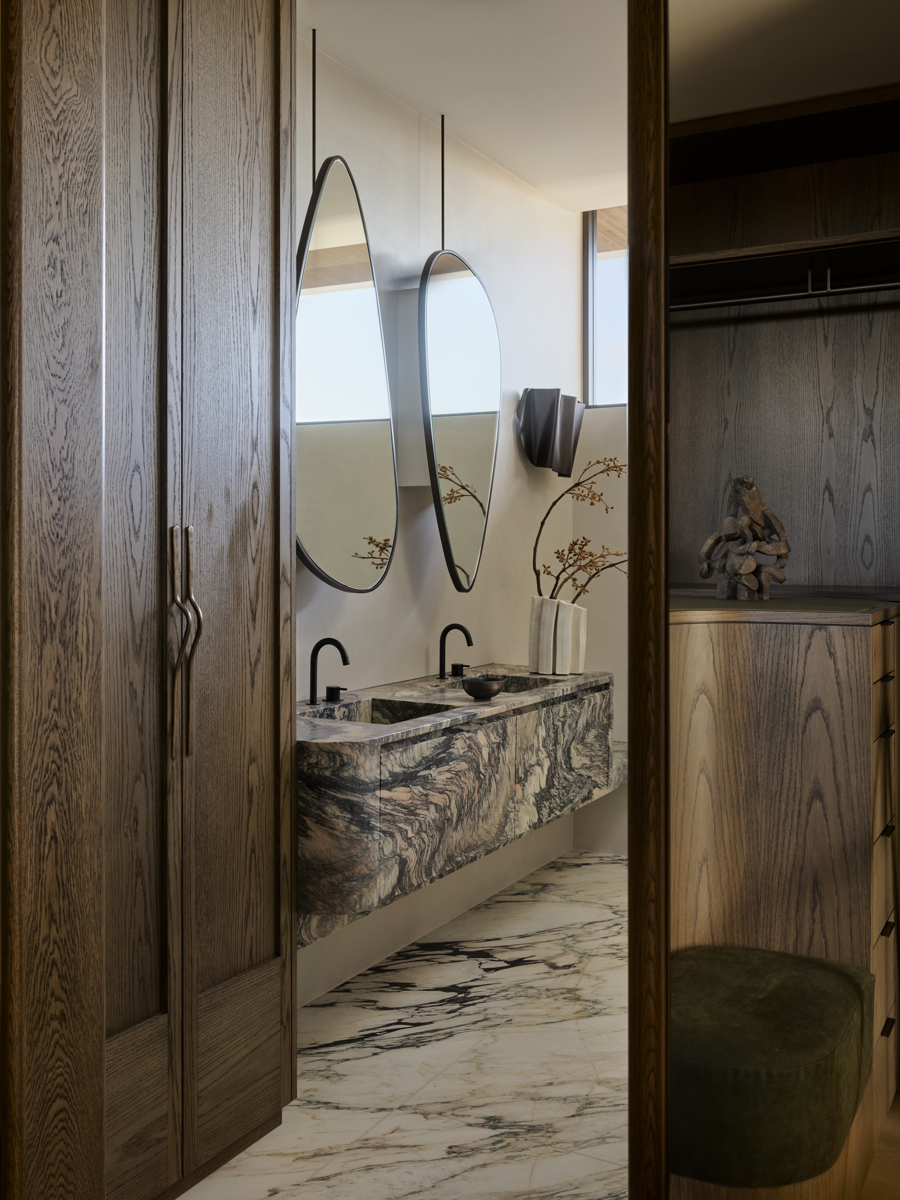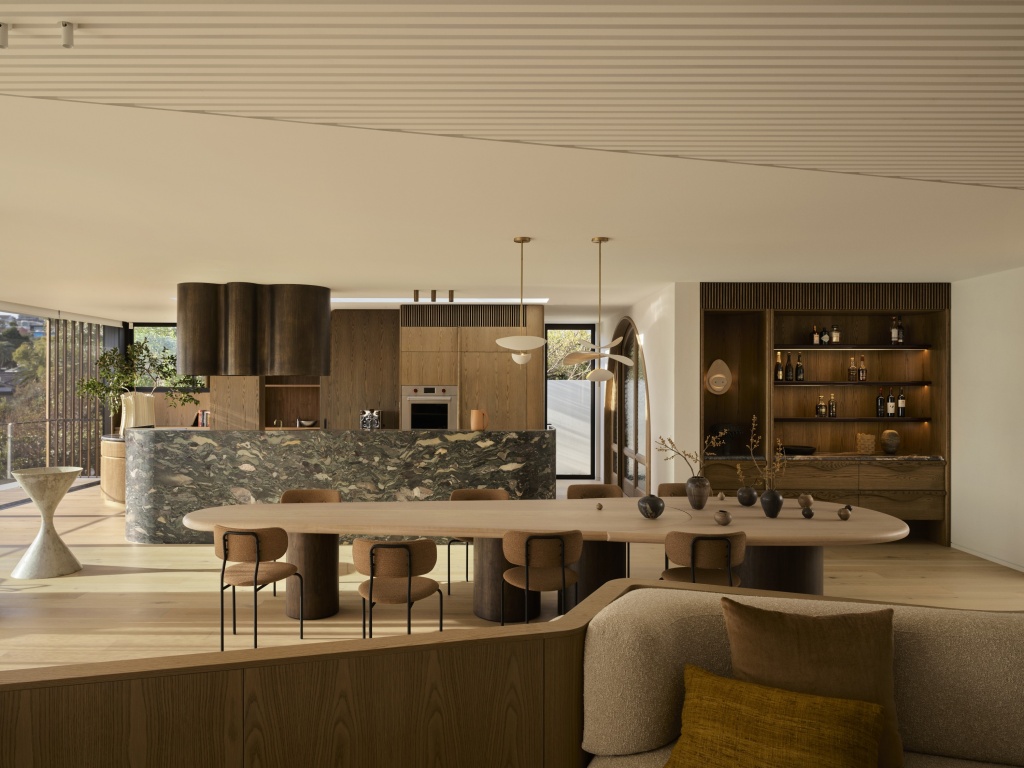 We began this major project by demolishing the original house down to its ground floor slab level, before reconstructing and re-configuring all of the internal walls of the ground and lower ground floors. An existing foyer became a double-level atrium. An additional third level was added, featuring five bedrooms, ensuites and a sprawling rooftop deck that offered panoramic views over the harbour and up to Manly.